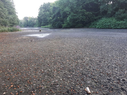 So sieht derzeit der Kleine Bramfelder See aus. Die Fotos habe ich am Sonntag, den 16.08.2020, aufgenommen. Erschreckend. Insbesondere, wenn man an die Auswirkungen für die Tierwelt denkt.